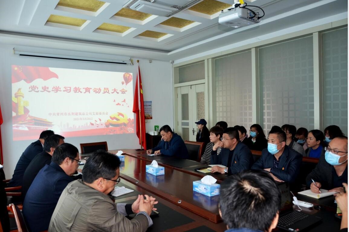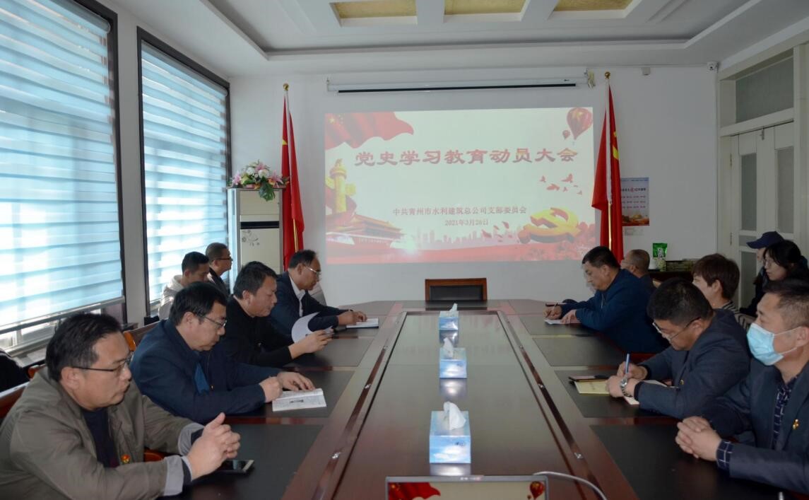3月26日下午,青州市水利建筑总公司党史学习教育动员大会召开,公司党支部书记、总经理何岗忠主持会议,青州市仁河水库运行维护中心党总支书记葛兵出席了会议并讲话。