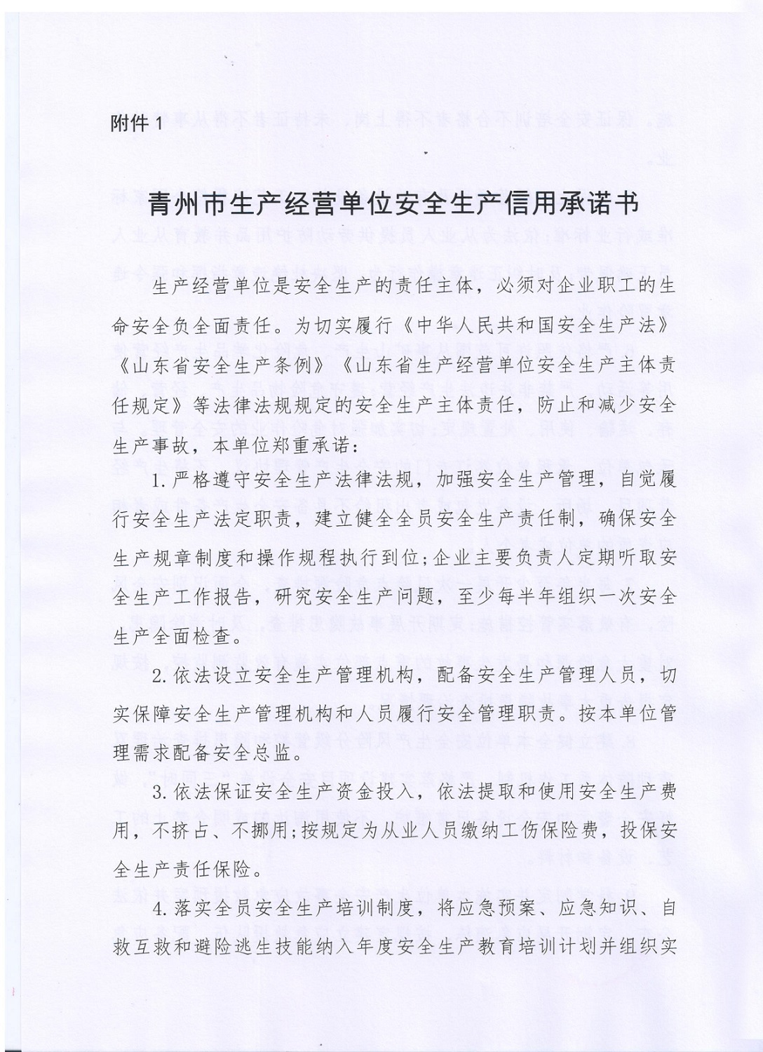 青州市生产经营单位安全生产信用承诺书
