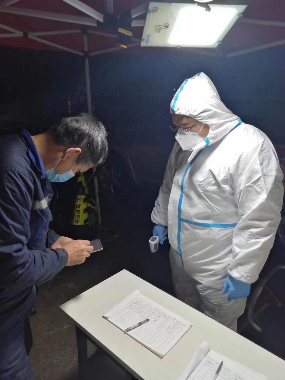 他们奋战在核酸检测点,协助医务工作者们进行检测人员引导、秩序维护、体温测量、检测码发放等工作,他们用防护服里的汗如雨下保障了一轮又轮的全市人员核酸检测有序快速完成。