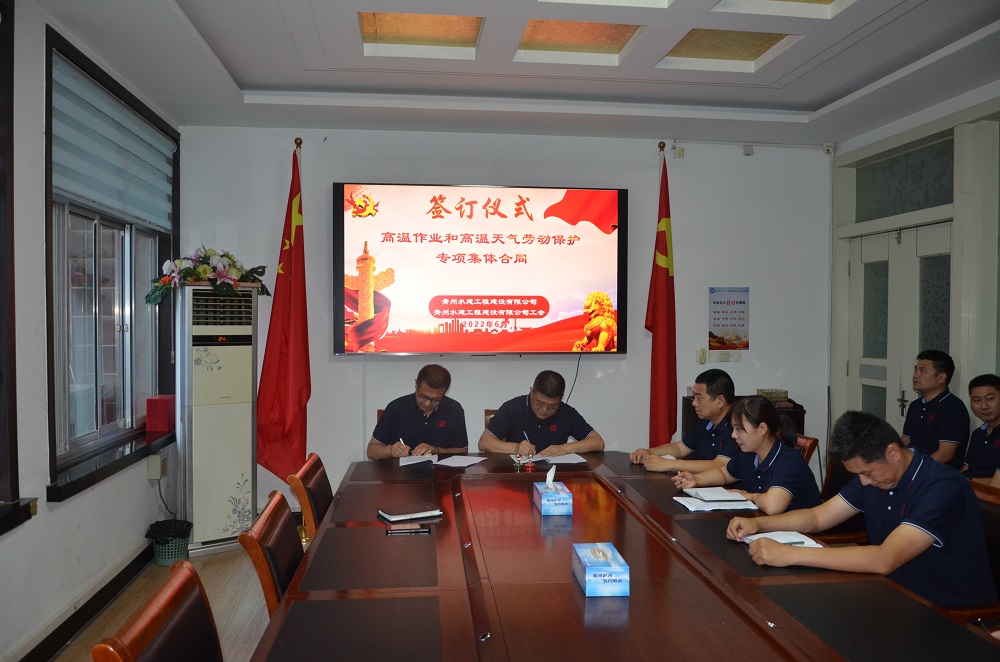 公司工会与公司、在建项目部签订了“高温作业和高温天气劳动保护专项集体合同”。