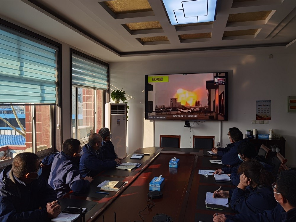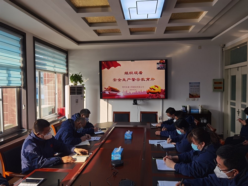 四、公司组织观看安全生产警示教育片,以案说法宣传普及安全生产知识,增强员工安全生产意识,把案例警示教育融入“开工第一课”。