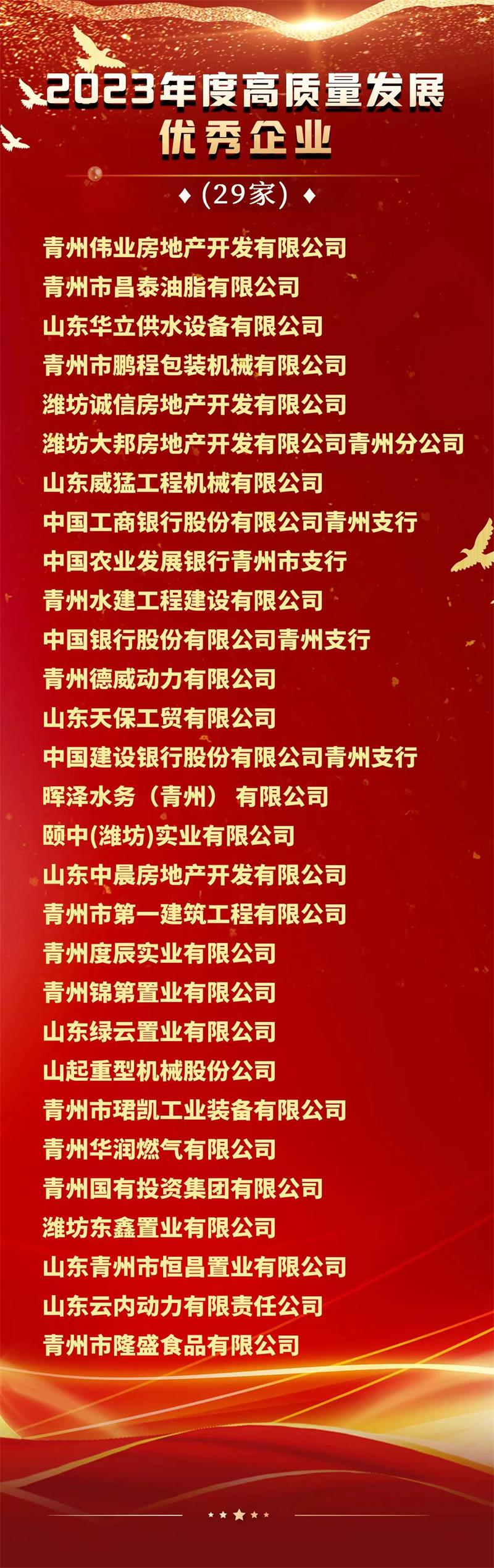 获此殊荣,体现了地方政府对我公司的肯定和赞许,彰显了青州水建品牌在青州的影响力,更加坚定了公司做强做大的信心和做精做专的决心。2024年,我公司将继续以习近平新时代中国特色社会主义思想为指导,坚持“稳中求进、以进促稳、先立后破”工作要求,完整、准确、全面贯彻新发展理念,立足新起点,发力新阶段,把握新机遇,展现新作为,全力推进企业高质量发展,勇担国企重任,坚定发展信心,以市场需求为导向,提升企业市场竞争力,积极助推全市经济社会高质量发展,为谱写“千年古城新崛起”的新篇章贡献水利建设力量。