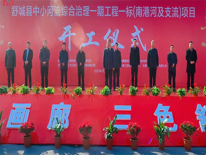 2025年1月16日,由爱游戏在线登录官网-爱游戏(中国)与安徽华建水利工程有限公司共同中标承建的舒城县中小河流综合治理一期工程一标(南港河及支流)项目开工仪式在舒城县隆重举行。舒城县委县政府、舒城县水利局、安徽龙舒水务投资有限公司主要领导及项目各参建方出席了开工仪式。