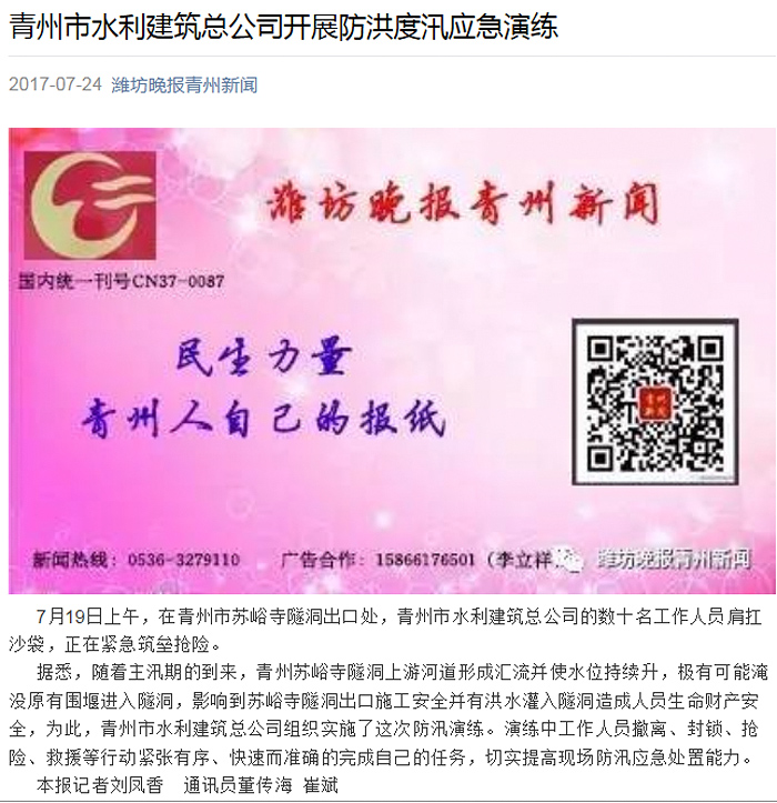 随着主汛期的到来,7月19日上午,青州市水利建筑总公司在山东省利用亚行贷款地下水漏斗区域综合治理示范项目青州市仁河、黑虎山、七一水库三库串联向城区供水工程项目部组织实施了防汛演练,青州市水利局、监理公司及总公司领导亲临现场参观指导。