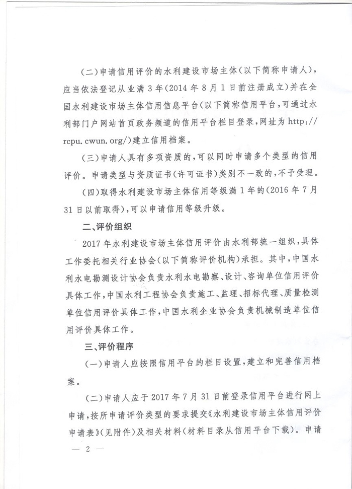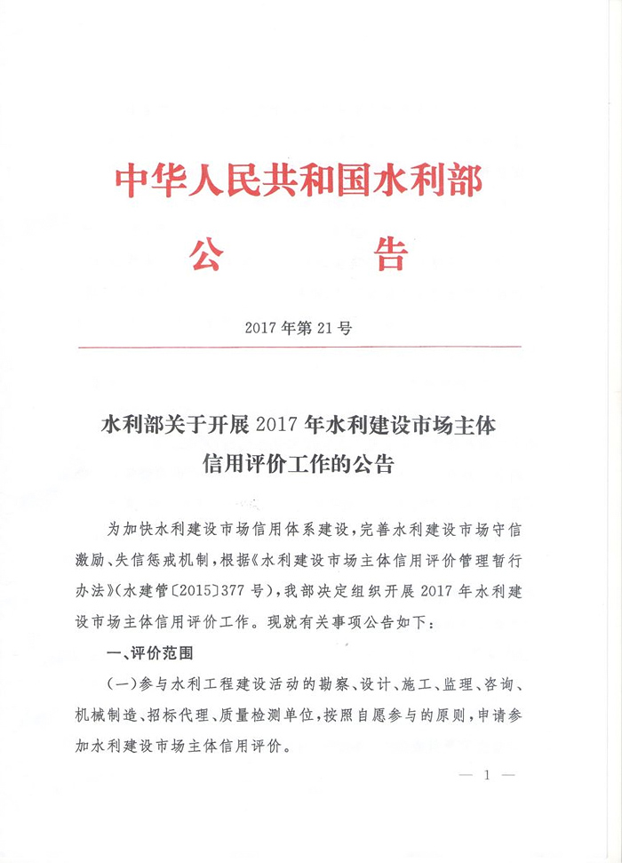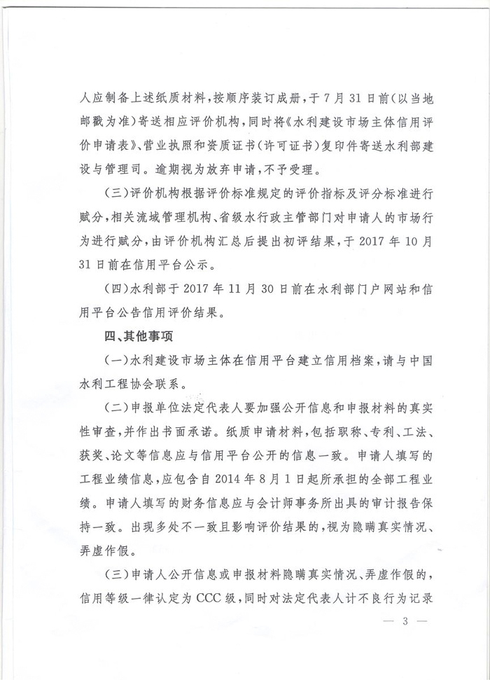 水利部关于开展2017年水利建设市场主体信用评价工作的通知